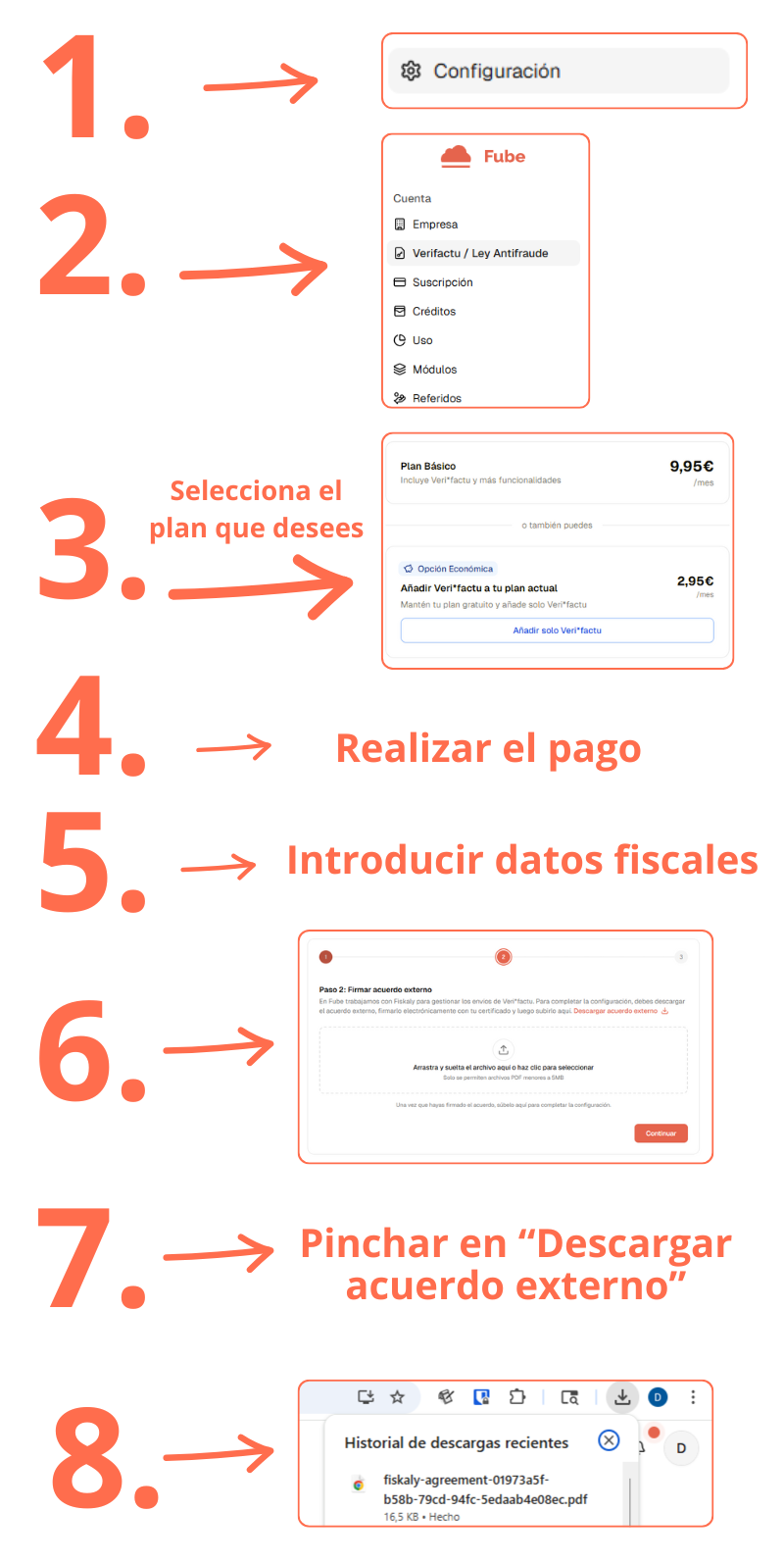 2. Si aún no has descargado el PDF, puedes hacerlo siguiendo estos pasos en Fube:
