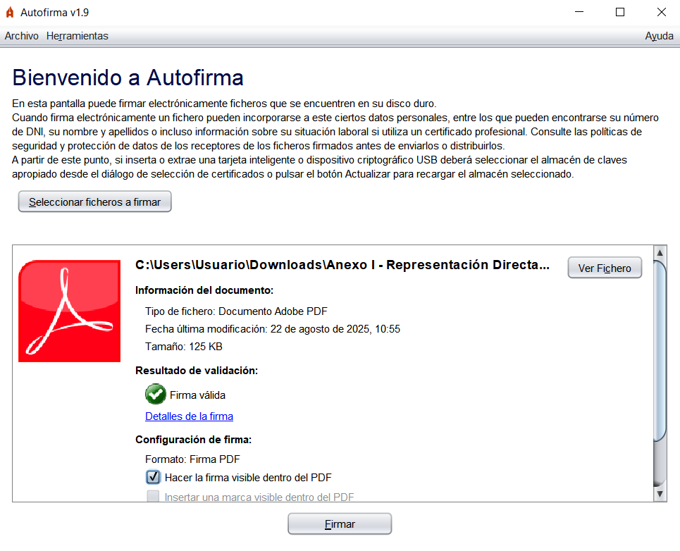 3. Ábrelo para que Autofirma lo cargue.
