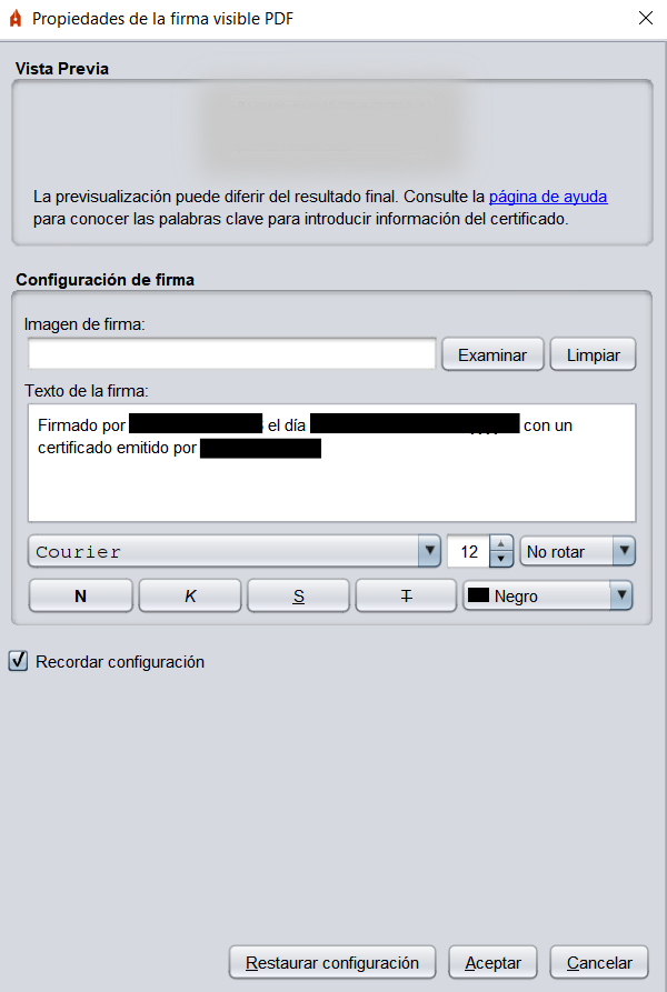 7. Configura las propiedades de tu firma visible. Puedes seleccionar la imagen que tendrá tu firma clicando en “Imagen de firma”.