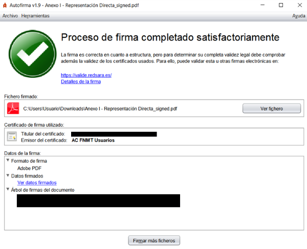 2. Autofirma te mostrará un mensaje de confirmación de la firma.
