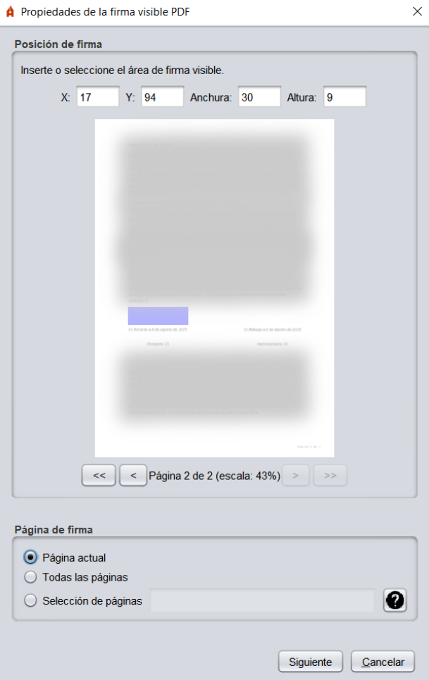6. Selecciona la posición visible de la firma. Si no seleccionaste la opción de incluir una firma visible, tu siguiente paso será seleccionar tu certificado digital
